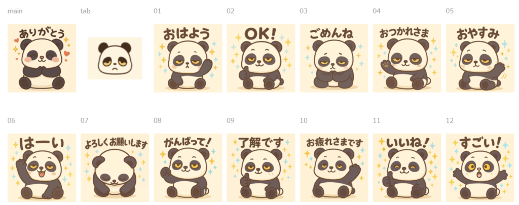 ※画像サイズや枚数などの仕様は更新される可能性があるため、必ず最新の「LINE Creators Market ガイドライン」を確認してください。
